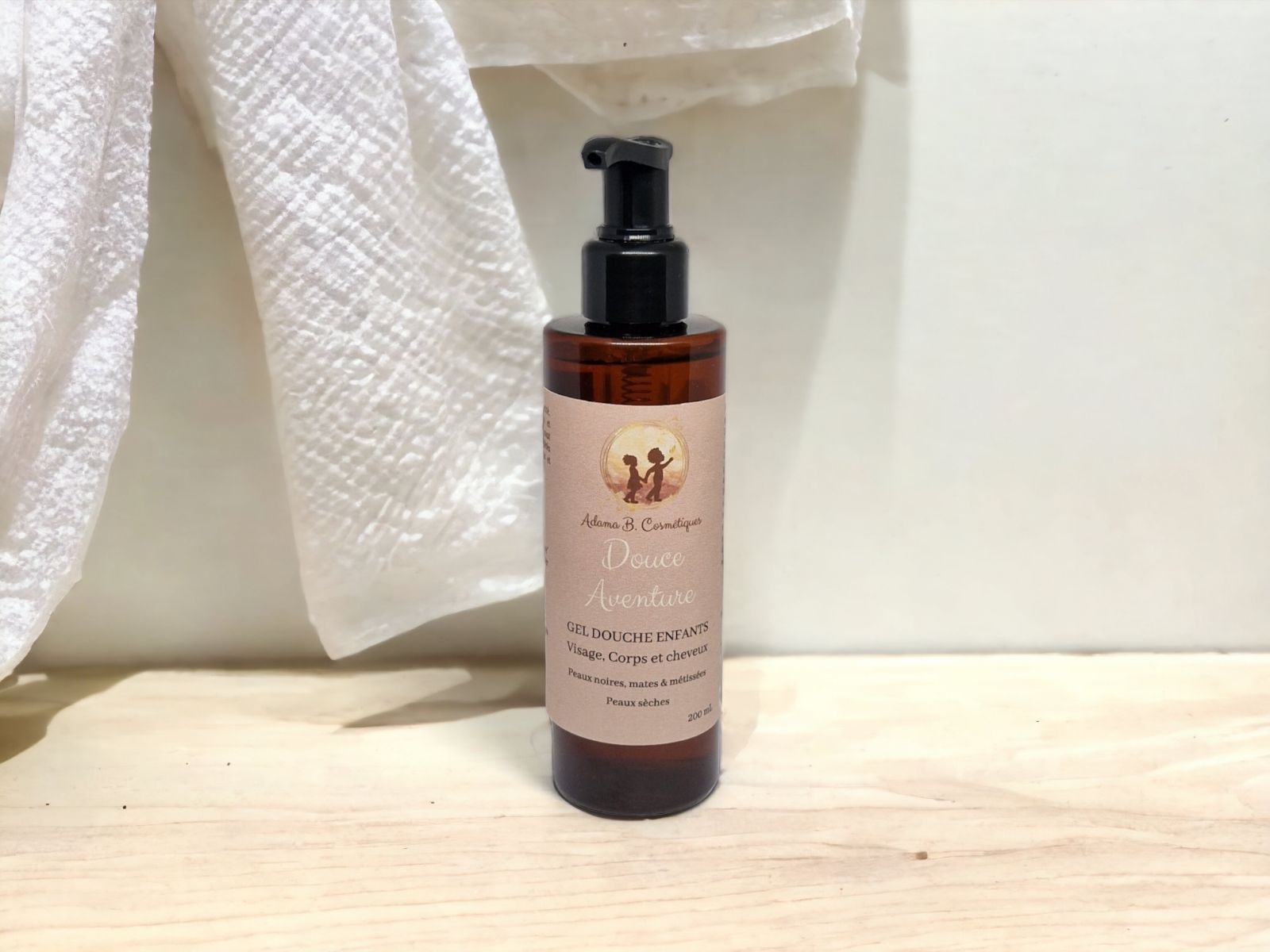 Notre Gel Douche Cheveux, Visage et Corps Enfants « Douce Aventure » est fabriqué avec amour à partir de merveilleux ingrédients à 99% naturels, il est doux et délicat comme une plume et en plus il n'irrite pas les yeux.